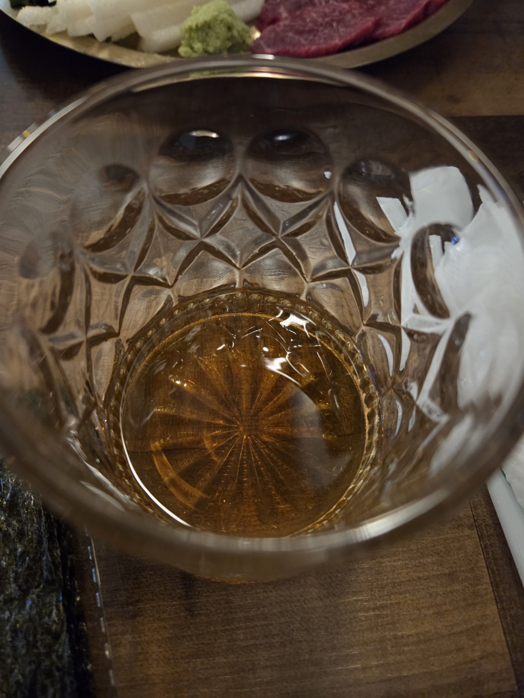 위스키의 향과 소주의 향이 싸우지 않고, 서로 껴안고 있는 느낌? 첫인상부터 정말 흥미로웠습니다.